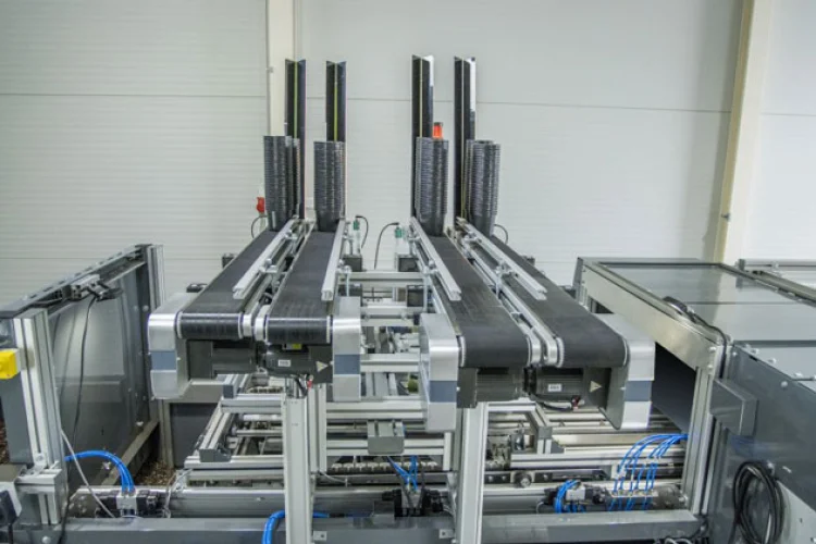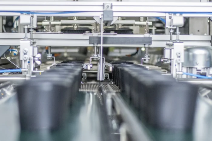 Dank Linearbauweise erfolgt bei der Topfübergabe kein Richtungswechsel mehr, sodass die Töpfe stabil und problemlos auf ein anschließendes Förderband übergeben werden.