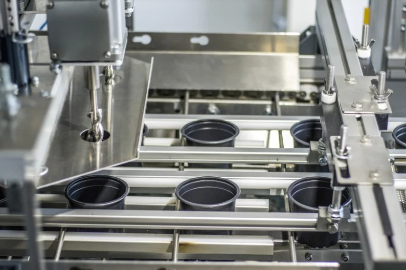 Im Gegensatz zu den per Knopfdruck verstellbaren Seitenführungen stellen sich die Topfmitnehmer der MATRIX-Topfmaschine nach der Programmwahl vollautomatisch auf die verwendete Topfgröße ein.